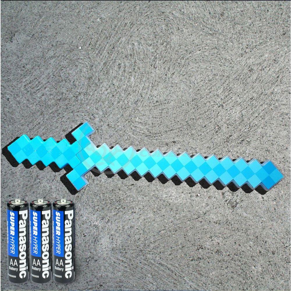 Kit Brinquedo Espada Pixel Minecraft Ninja 58cm Diamante Com Som E Luz + 3 Pilhas Aa - Azul 61a Espada Pixel Minecraft Mede 58cm, Possui Uma Luz Interna Que Brilha E Um Efeito Sonoro Ao Ser Acionado O Botão Existe Na Espada.a Espada É Composta De Plástico Resistente Mais Partes Eletrônicas.informações- Imagens Meramente Ilustrativas- Recomendação: Recomendado Para Crianças Maiores De 3 Anos De Idade.- Restrição De Idade: Não Recomendável Para Menores De 3 Anos Por Conter Peças Pequenas Que Podem Ser Engolidas.- Código Do Fabricante: Ytl-0083- Certificado: Certificado Pelos Órgãos Autorizados - Ocps (organismos De Certificação De Produtos)- Composição / Material: Plástico Abs- Dimensões (axlxc): Aproximadamente 2 X 15 X 58 Cm- Funcionamento: À Base De 3 Pilhas Aa (pilhas Inclusas)itens Inclusos1 Espada Pixel Minecraft3 Pilhas Aa