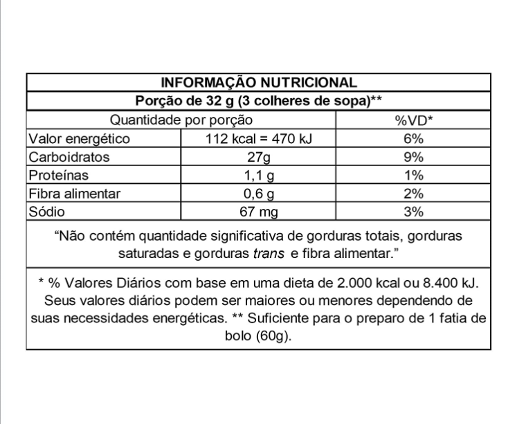 farinha De Trigo Enriquecida Com Ferro E Ácido Fólico, Açúcar, Amido De Milho (bacillus Thuringiensis E/ou Streptomyces Viridochromogenes E/ou Agrobacterium Tumefaciens E/ou Zea Mays E/ou Sphingobium Herbicidorovans), Fermentos Químicos: Bicarbonato De Sódio, Fosfato Ácido De Alumínio E Sódio E Fosfato Monocálcico E Aromatizante.
