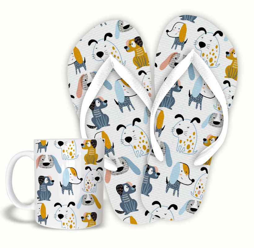 CalçadosChinelosKIT Cachorro Caneca cerâmica + Chinelo