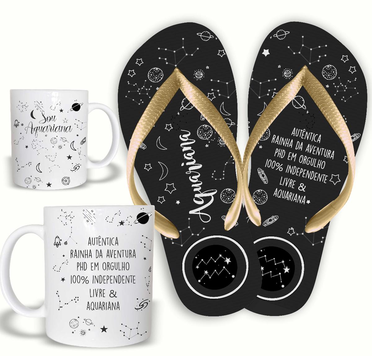 CalçadosChinelosKit Caneca + Chinelo Signo Aquário