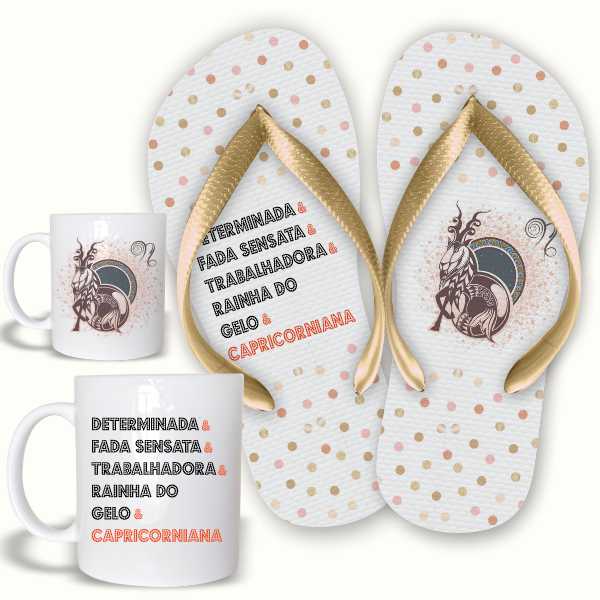 CalçadosChinelosKit Caneca + Chinelo Signo Capricórnio