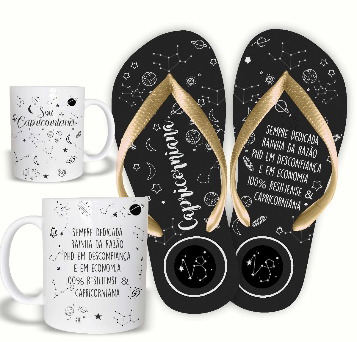 CalçadosChinelosKit Caneca + Chinelo Signo Capricórnio