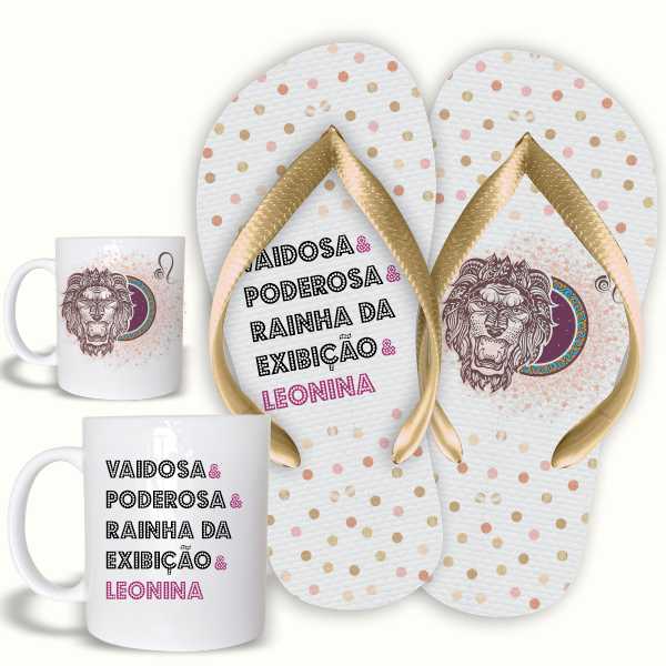 CalçadosChinelosKit Caneca + Chinelo Signo Leão
