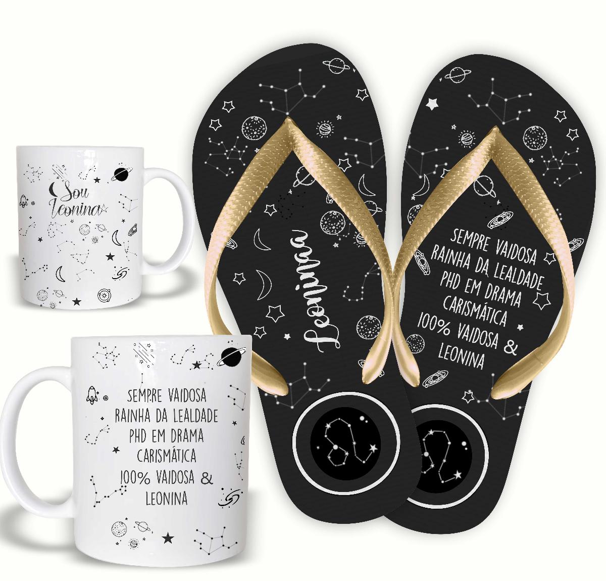 CalçadosChinelosKit Caneca + Chinelo Signo Leão