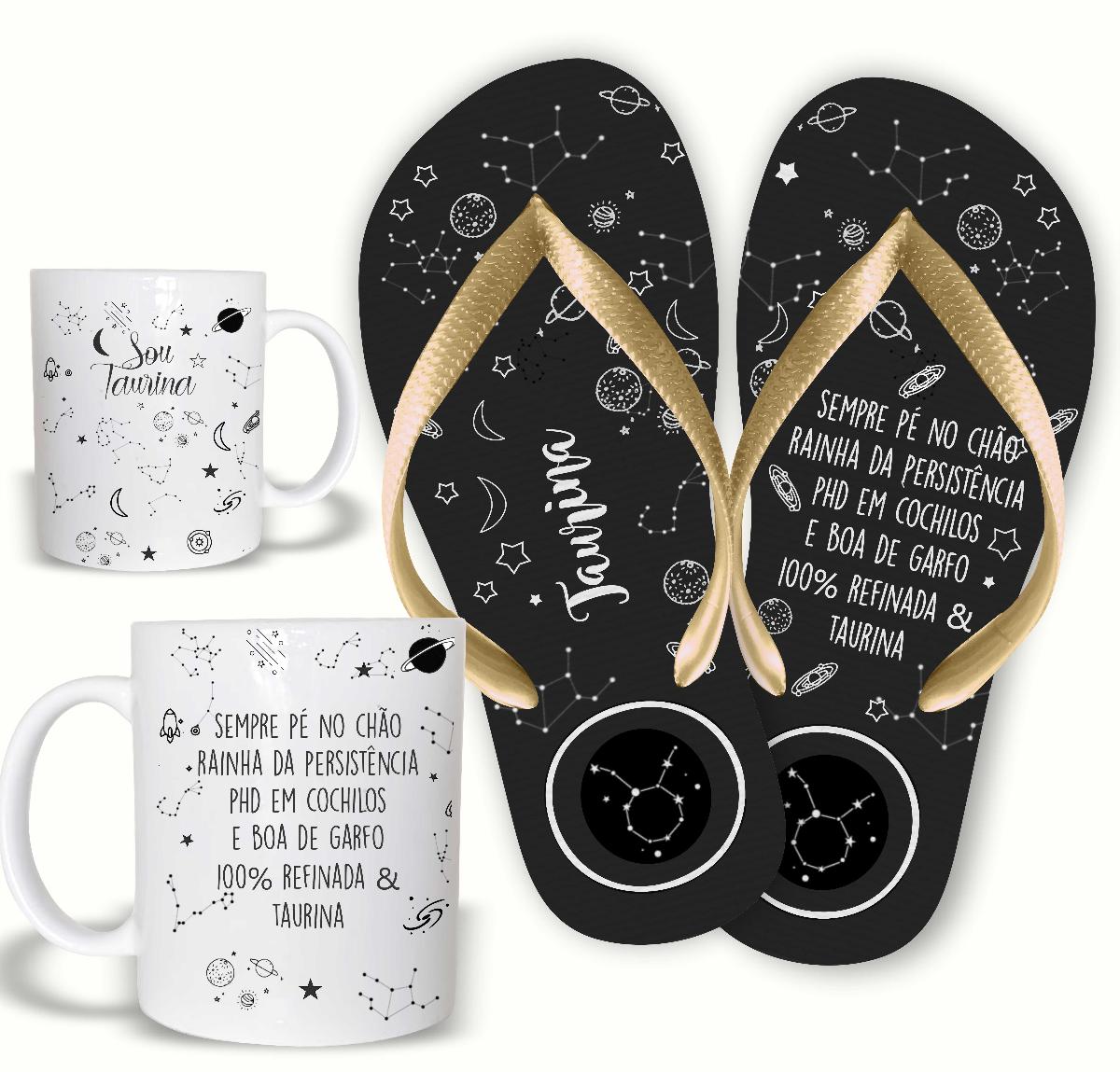 CalçadosChinelosKit Caneca + Chinelo Signo Touro