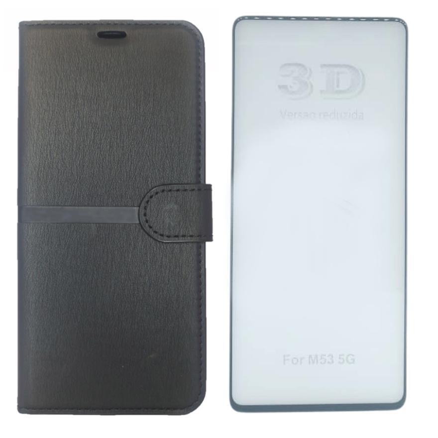 Kit Capa Carteira Compatível Com Samsung M53 + Película 3d