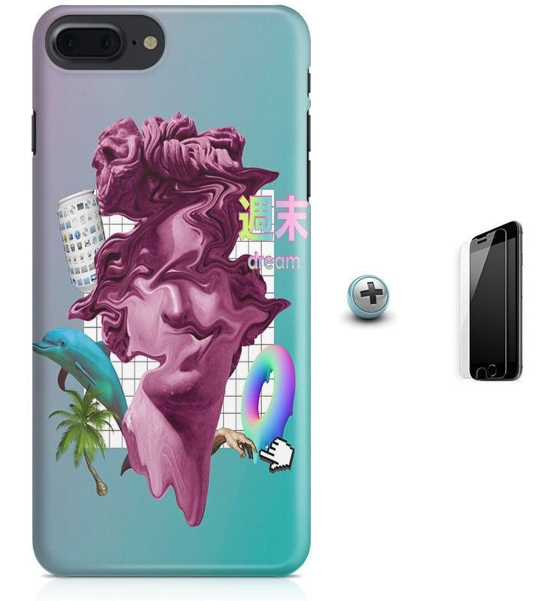 Kit Capa iPhone 8 Plus - Vaporwave + Pel Vidro B30