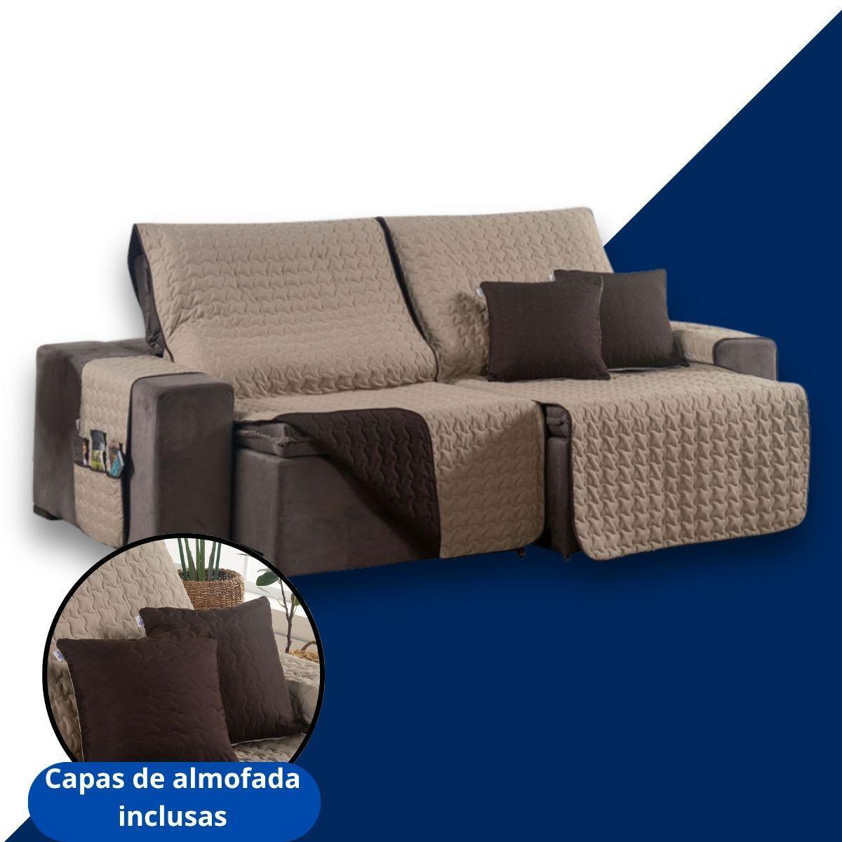 Kit Capa Protetora Sofá Retrátil 2,40m Shield Dupla Face + Almofadas