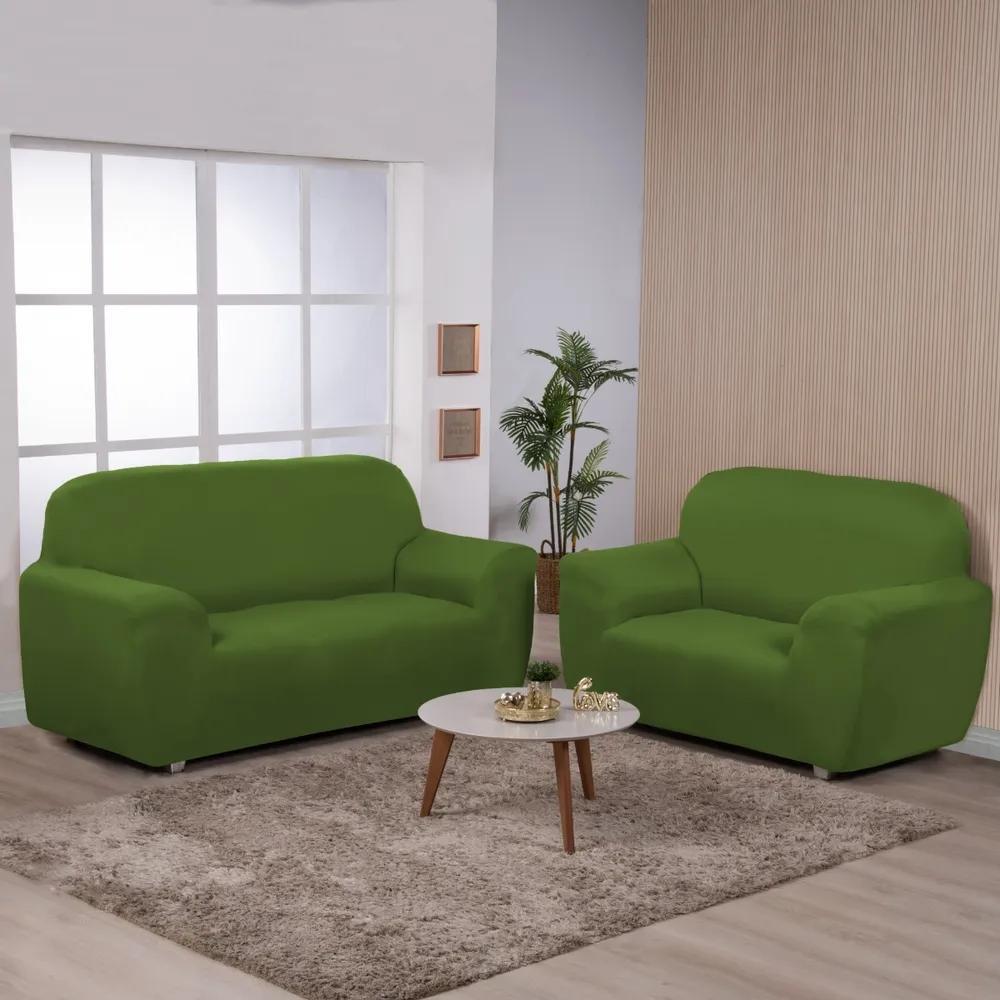 Kit Capa De Sofá Magic Elastex 2 E 3 Lugares Rapido Cor Verde