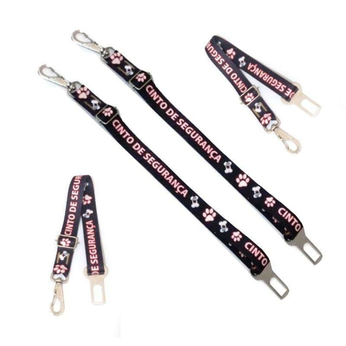 Kit contem 2 cintos de segurança na cor preta para cães e gatos...Confeccionado em fita de nylon 25 mm de diâmetro na cor preta altamente resistente,.. Reguladores em nylon para segurança do seu pet,.. Mosquetão com trava de segurança... Tamanho único... Medidas aproximada: 35 cm à 62 cm de comprimento.....A guia de Segurança é um acessório indispensável para levar seu bichinho de estimação no carro com segurança e cumprindo as regras de transito...Muitas vezes não se tem uma real consciência do perigo que pode resultar um cão ou gato solto numa batida, não só o animalzinho poderia machucarse seriamente ou sair voando por uma janela, mas também se tornar um objeto que pode bater e causar graves ferimentos nos passageiros..Se o animal andar solto dentro do carro o motorista pode ser multado pelo artigo 169 do CTB, que prevê notificação e três pontos.