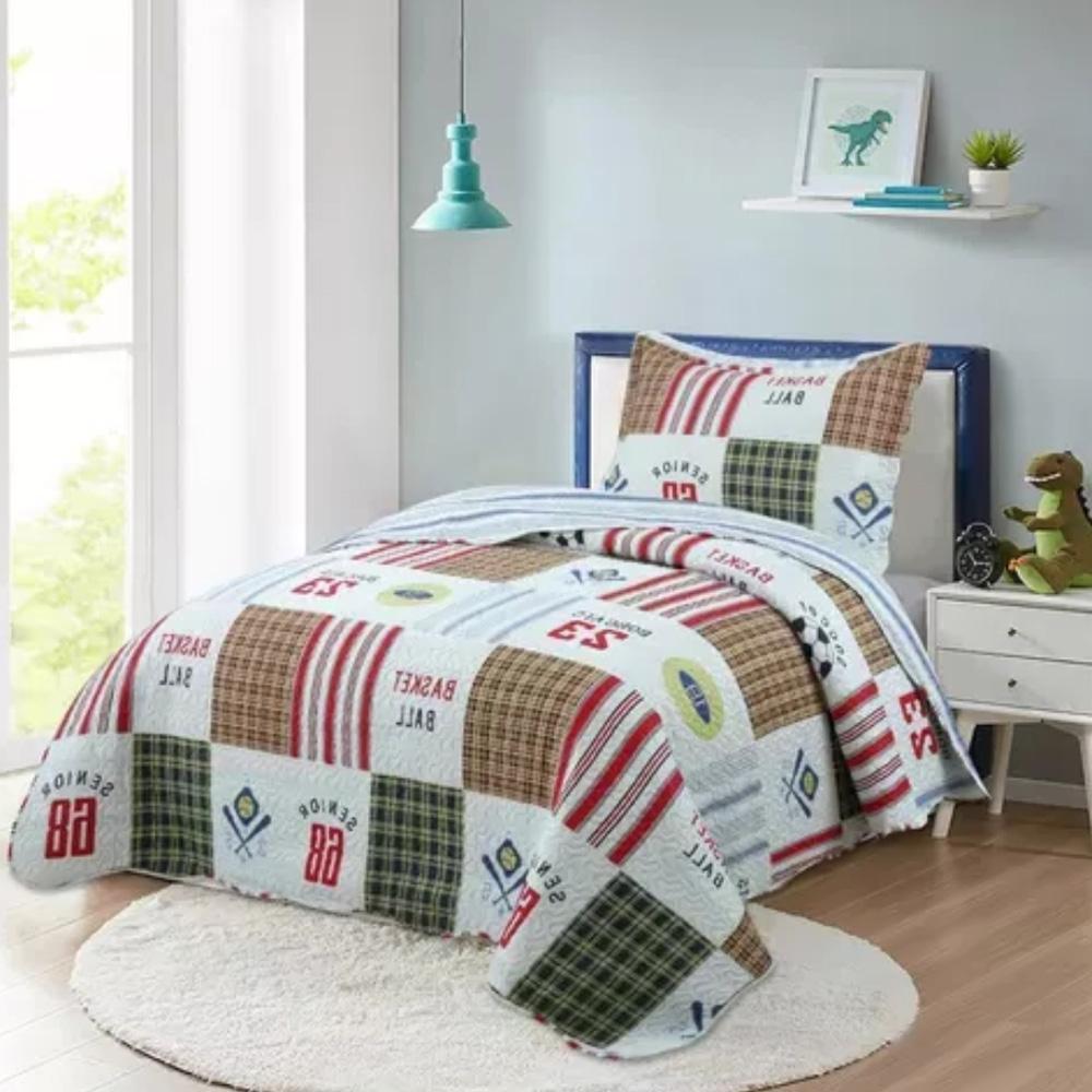 Kit Cobre Leito Colcha Solteiro Infantil Studio Dupla Face Estampado 2 Peças - Super Ball - Cinza