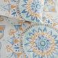Kit Cobre Leito Colcha Turin Solteiro Estampada Com Babado 400 Fios 2 Peças Mandala Azul Bege