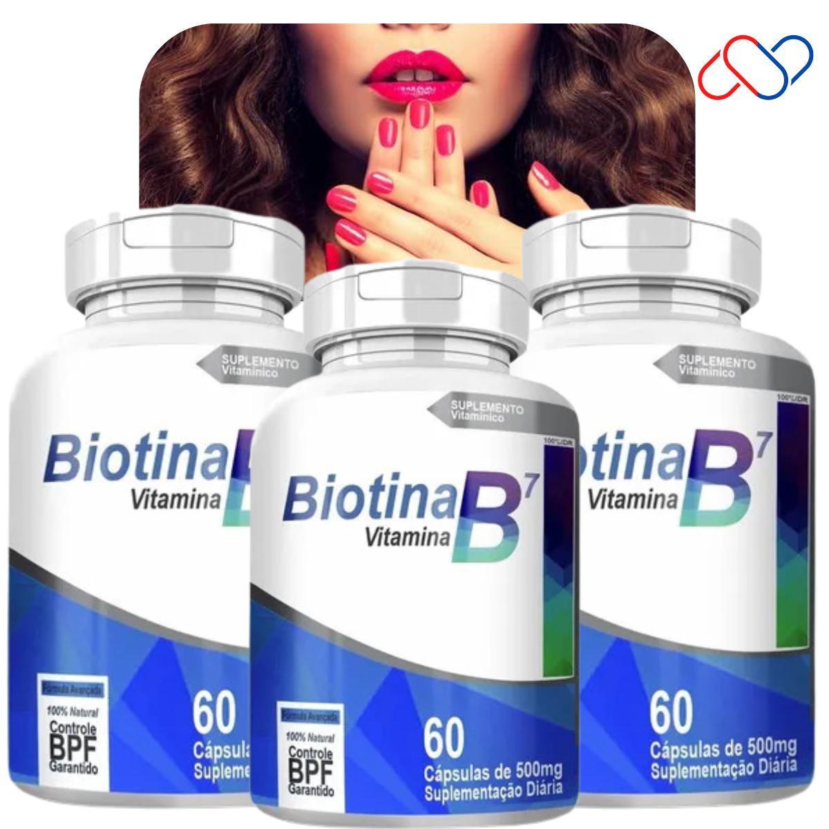 Kit Com 3 Potes Biotina B7 500mg 180 Cápsulas