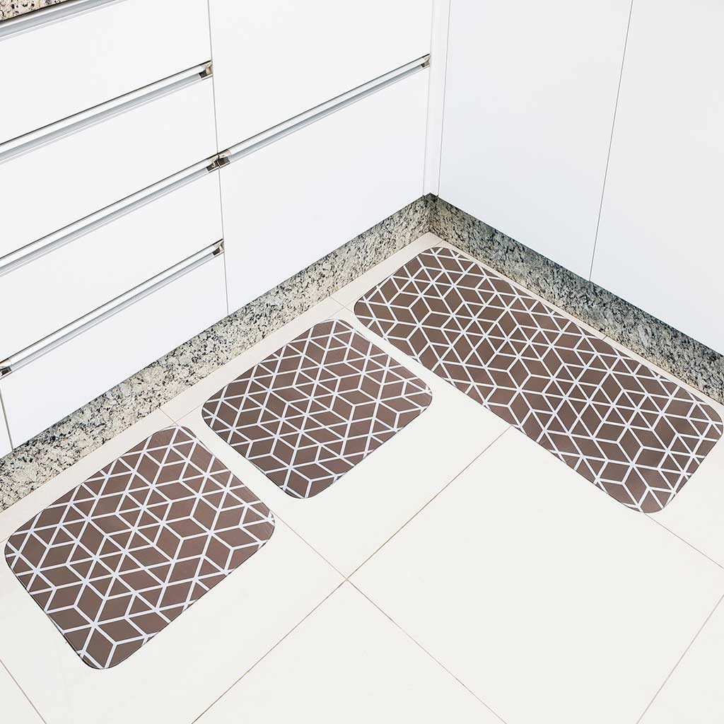 Kit Com 3 Tapetes De Cozinha Losango Bege -