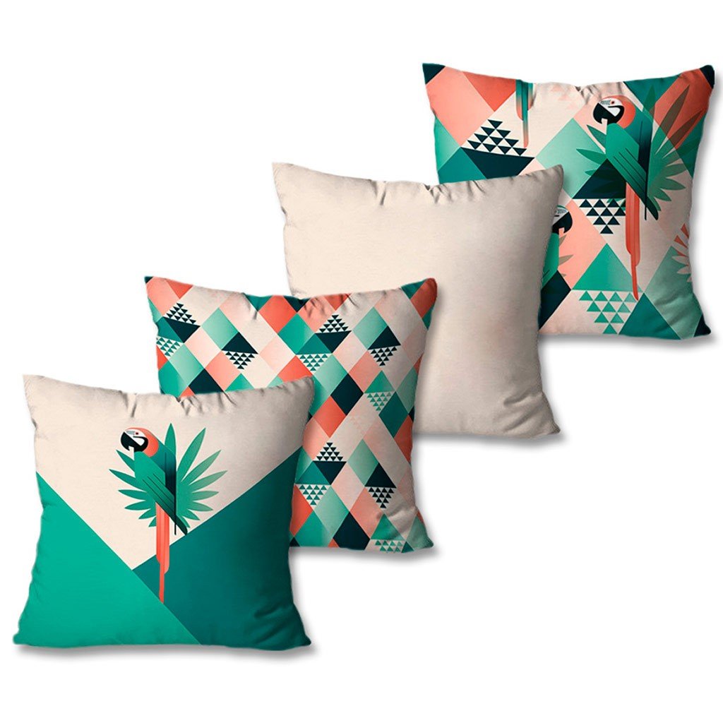 Kit Com 4 Capas De Almofadas Decorativas Arara Rosa E Verde - características Gerais Do Produto: Conteúdo Da Embalagem: 4 Capas De Almofada 45x45 Estampa: Estampa Digital Frente E Verso Alta Resolução Tecido: Oxford 100% Poliéster Zíper: Zíper Invisível Medida: 45cm X 45cm garantia: 7 Dias