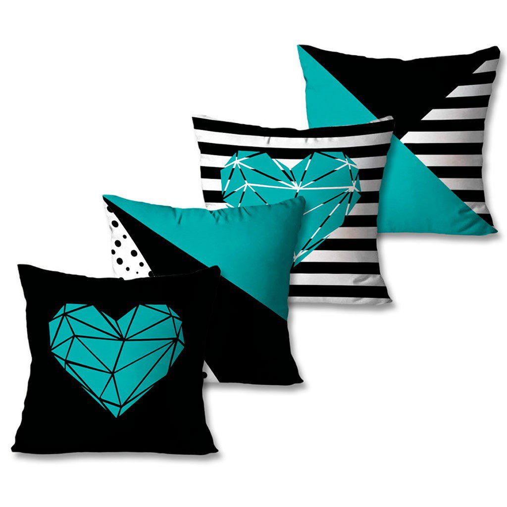 Kit Com 4 Capas De Almofadas Decorativas Azul E Preto -