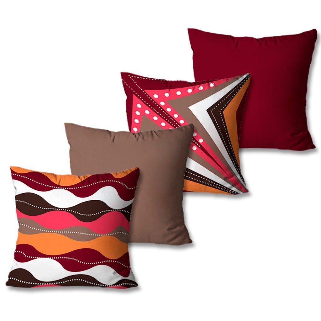 DecoraçãoCapas para AlmofadasKit Com 4 Capas De Almofadas Decorativas Retrô Laranja E Rosa