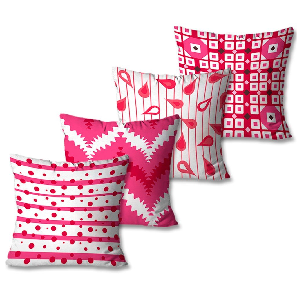Kit Com 4 Capas De Almofadas Decorativas Retrô Pink -
