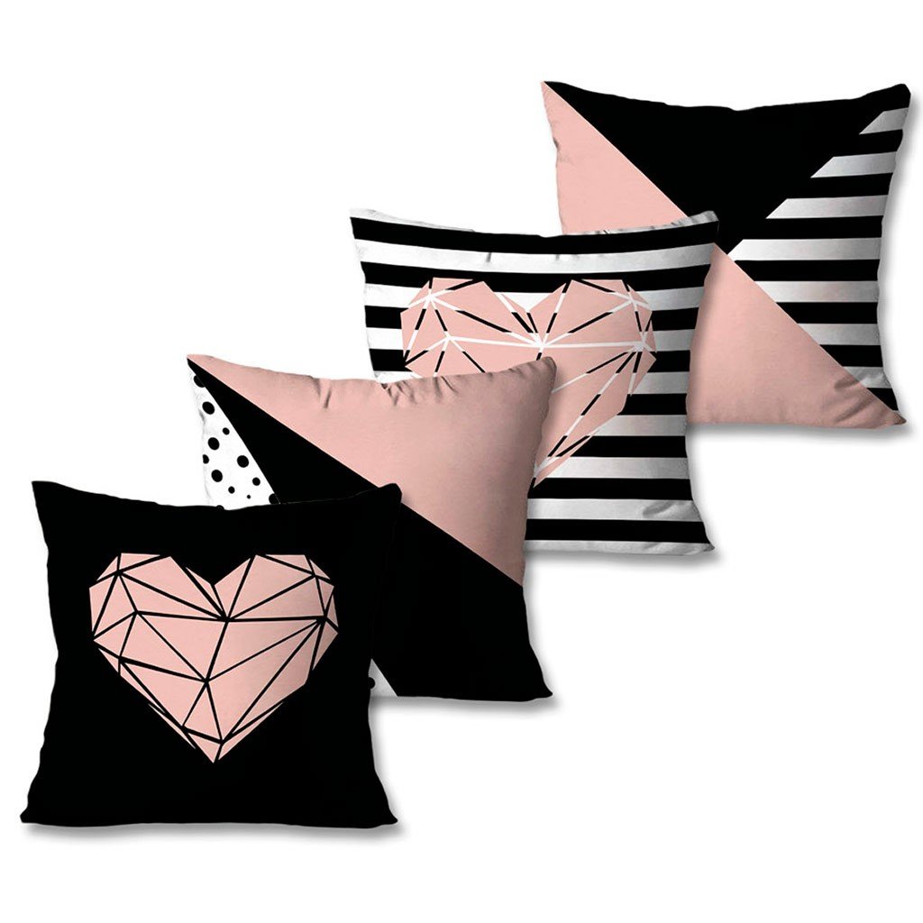 Kit Com 4 Capas De Almofadas Decorativas Rosa E Preto -