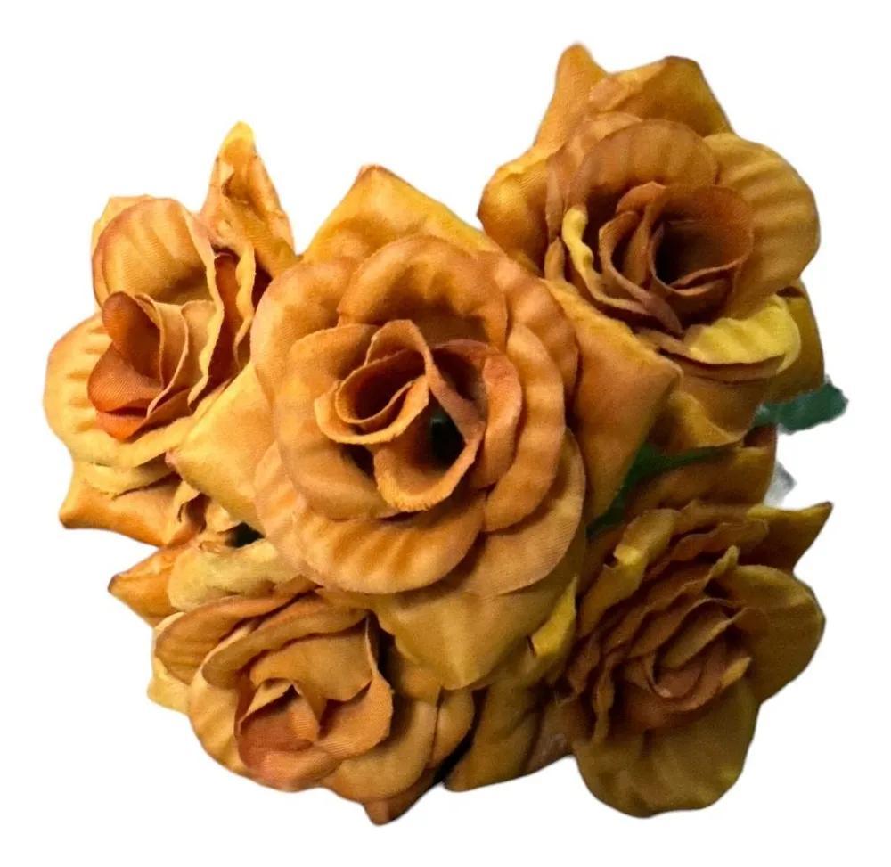 Kit Com 5 Buquês De Rosa Aveludada Artificial Com Terracota