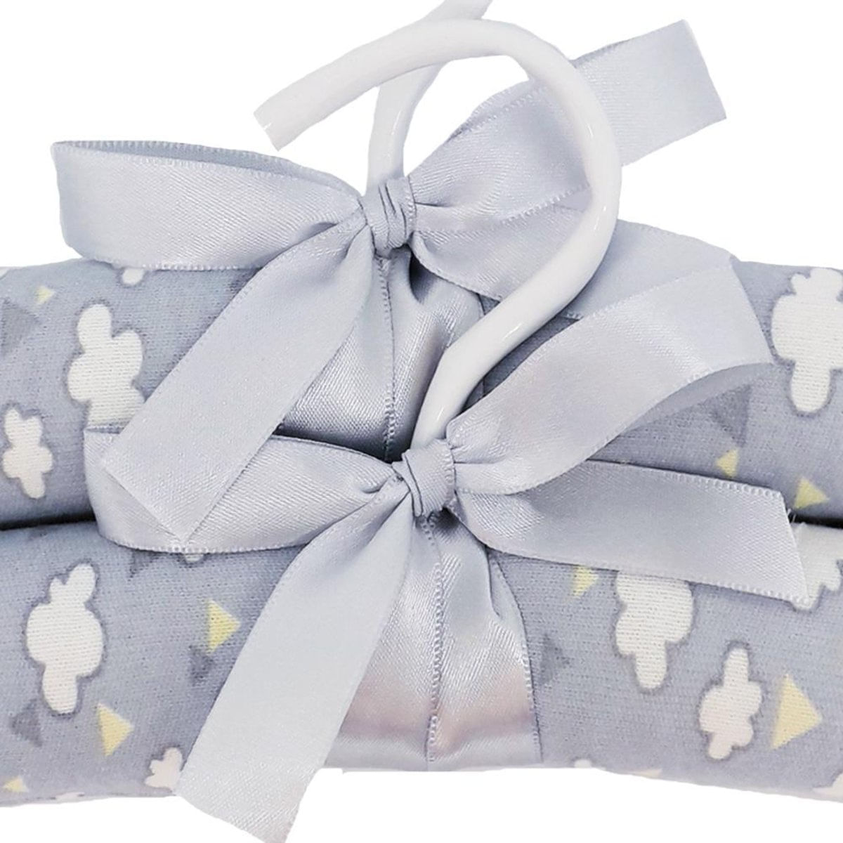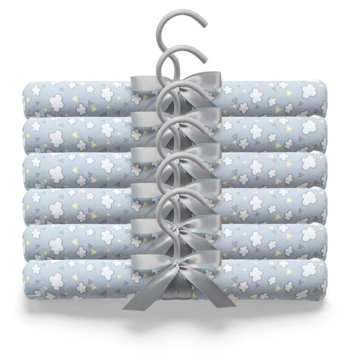Ótima opção para deixar o quartinho do bebê mais bonito e as roupas organizadas.É com Kit de 6 cabides Hug, produzidos em suedine 100% algodão.Possuem acabamento especial feito à mão e detalhe em lacinho de cetim. Medidas : 29cm x 11cm. Com estampa Nuvens de Algodão.
