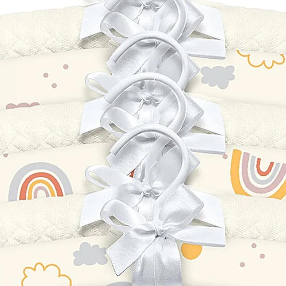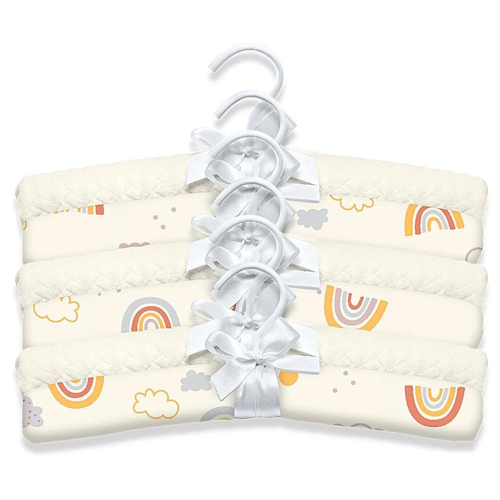 Kit com 6 Cabides Hug Siga o Arco Iris E14906TUDO QUE VOCÊ PRECISA SABER:Nunca ficou tão fácil organizar o quartinho do seu bebê com o Kit de cabides com 6 Hug! Com eles, você pode pendurar as roupinhas mais lindas do bebê, com todo o cuidado que ele merece.SIGA O ARCO ÍRIS:Depois de uma grande tempestade, sempre surge um belo arco íris, nesse caso surgiram vários pelo céu, acompanhados de nuvens lindas. Retratamos no rotativo exclusivo diversos arco íris espalhados pelo céu, com sua alegria imensa.DIFERENCIAIS:Laço feito manualmente em cada cabide,Suedine com nanotecnologia que agrega maciez e tratamento antibacteriano e antifúngico,Matelassê com nanotecnologia que agrega maciez e tratamento anti pilling, que torna o produto mais resistente às lavagens, proporcionando maior durabilidade, e retardando o aparecimento das bolinhas na malha,Estampa rotativa exclusiva Hug.MEDIDA:29cm largura x 11cm altura.CARACTERÍSTICAS:Suedine 100% algodão,Matelassê 100% poliéster.POR QUE COMPRAR HUG?A Hug é uma fábrica brasileira de artigos infantis com mais de 10 anos de atuação no mercado. O processo de fabricação de todos nossos produtos são acompanhados por nossos especialistas com um rigoroso processo de qualidade. Nossos tecidos antialérgicos, macios e confortáveis são feitos para a pele delicada dos bebês. O resultado é um produto premium, durável e feito com muito carinho.