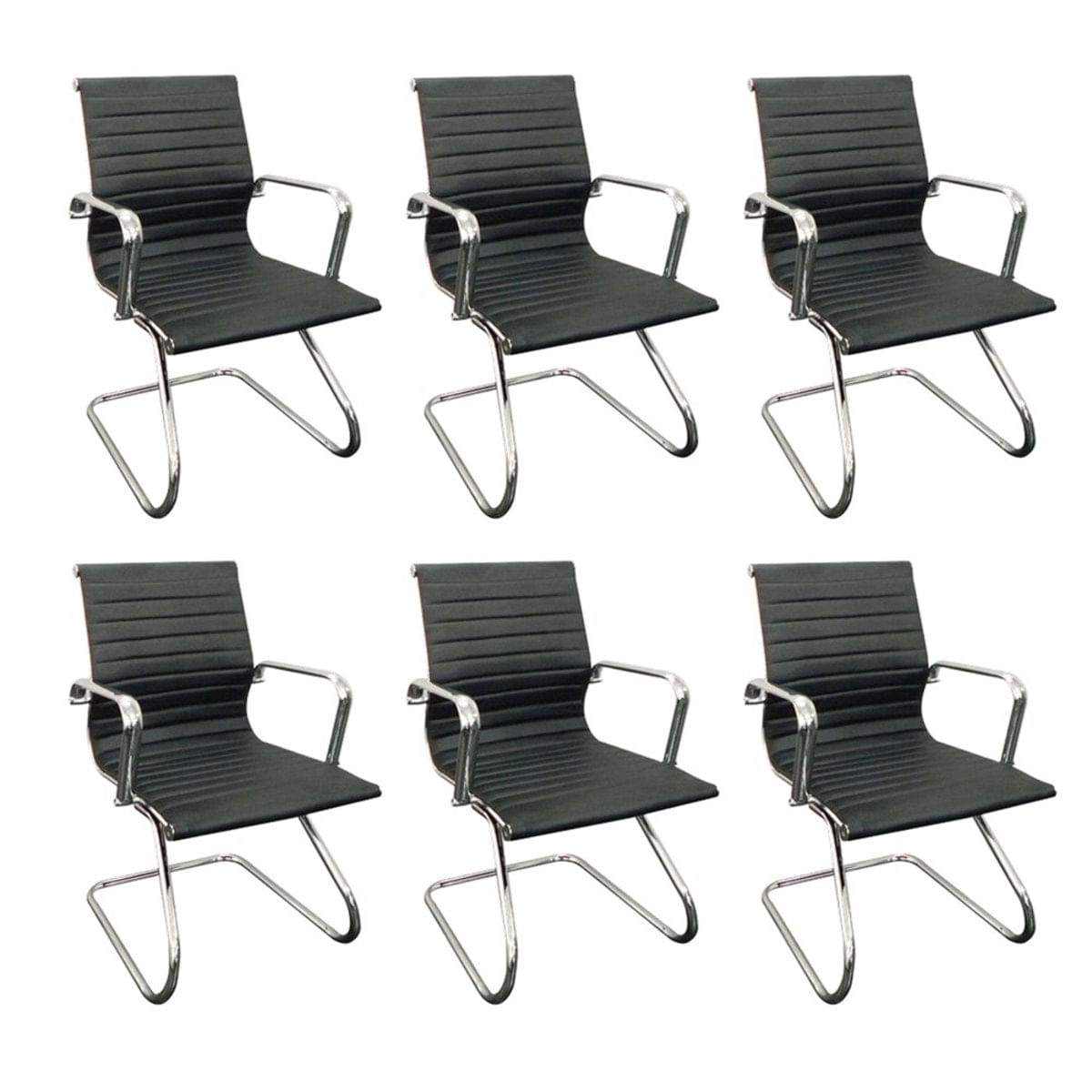 Kit com 6 Cadeiras Executiva com base Fixa Esteirinha Preto, base fixa em metal com apoio antideslizante.