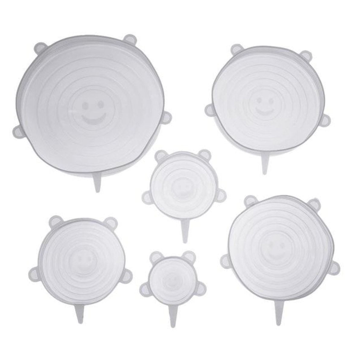 Kit Conjunto com 6 Tampas de Silicone Flexível..Estas maravilhas de silicone aderem virtualmente a qualquer coisa (graças à magia da sucção), transformando uma tigela de vidro, uma panela de alumínio, uma assadeira de cerâmica e até mesmo um pote de plástico em armazenamento instantâneo..As tampas estão disponíveis em 6 tamanhos diferentes, para pequenas tigelas canecas e para grandes tigelas. Se você adora levar aquela sua comida especial para casa dos amigos, elas são especialmente úteis..As tampas de armazenamento de silicone vêm em 6 tamanhos diferentes e atendem a maioria das suas necessidades..As Tampas de silicone são redondas, mas elásticas o suficiente para caber confortavelmente sobre canecas, potes, xícaras e tigelas de outros formatos..Caracteriza não-tóxico, BPA livre, pode ser colocada na máquina de lavar louça, vedação hermética para o alimento permanecer fresco...Características:.- 6 tamanhos: Cada pacote inclui 6 tamanhos diferentes para atender todas as suas necessidades.- Resistente: Pode ir a máquina de lavar louça, freezer,.- Compatível: Eles são compatíveis com vários tamanhos e formas de recipientes,.- Mantém alimentos frescos: Selo hermético mantém alimentos frescos por mais tempo e evita derramamentos,.- Mini = 6.5 cm,.- Pequena = 9.5 cm,.- Média = 11.5 cm,.- Grande =14 cm,.- Extra Grande = 16 cm,.- Jumbo = 19,5 cm...-Imagens Ilustrativas,.-Todas as informações são de responsabilidade do Fabricante.