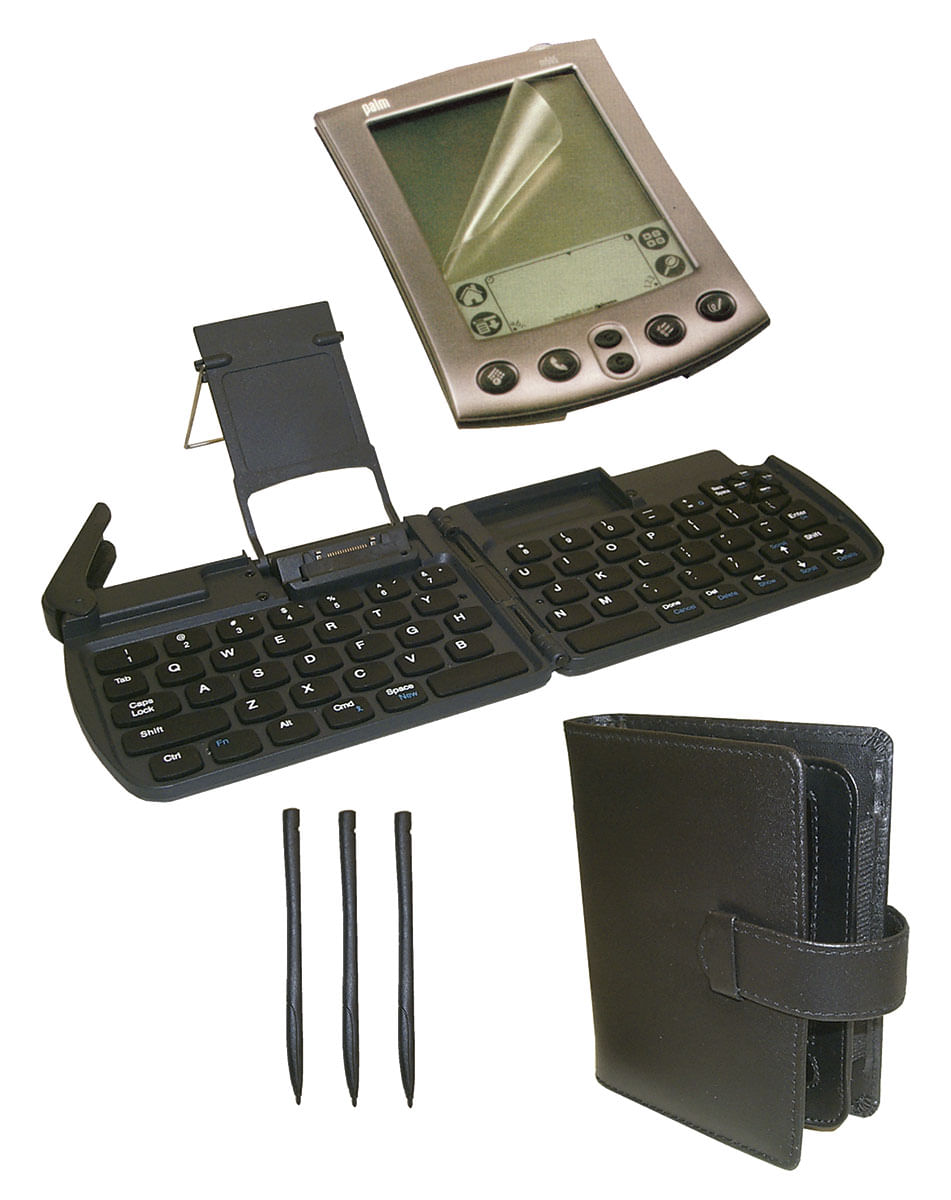 • Kit De Acesórios Para Palm • Contém Estojo Em Couro, Caneta, Protetor De Tela, E Teclado • Estojo Em Couro Com Fechamento E Porta Cartões De Crédito Ou Visita • Protetor De Tela Com 12 Unidades Que Protege A Tela Do Palm Contra Aranhões Evitando O Desgaste Da Tela, Além De Reduzir Os Reflexos Na Tela • Fácil Remoção Não Danificando A Tela • 3 Canetas De Toque • Teclado Dobrável Para Palm Com Teclas De Aceso Rápido A Funções Como Endereços, Calendário, Etc. • Suporte Para Colocar Palm Sobre O Teclado • Ideal Para Viagens E Reuniões E Muito Prático Para Uso No Escritório Ou Em Casa • Não Precisa De Baterias Ou Pilhas • Aplicação: Palm Séries M50/505/515 • Embalagem : Blister