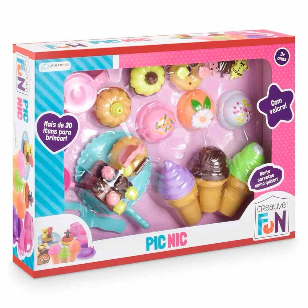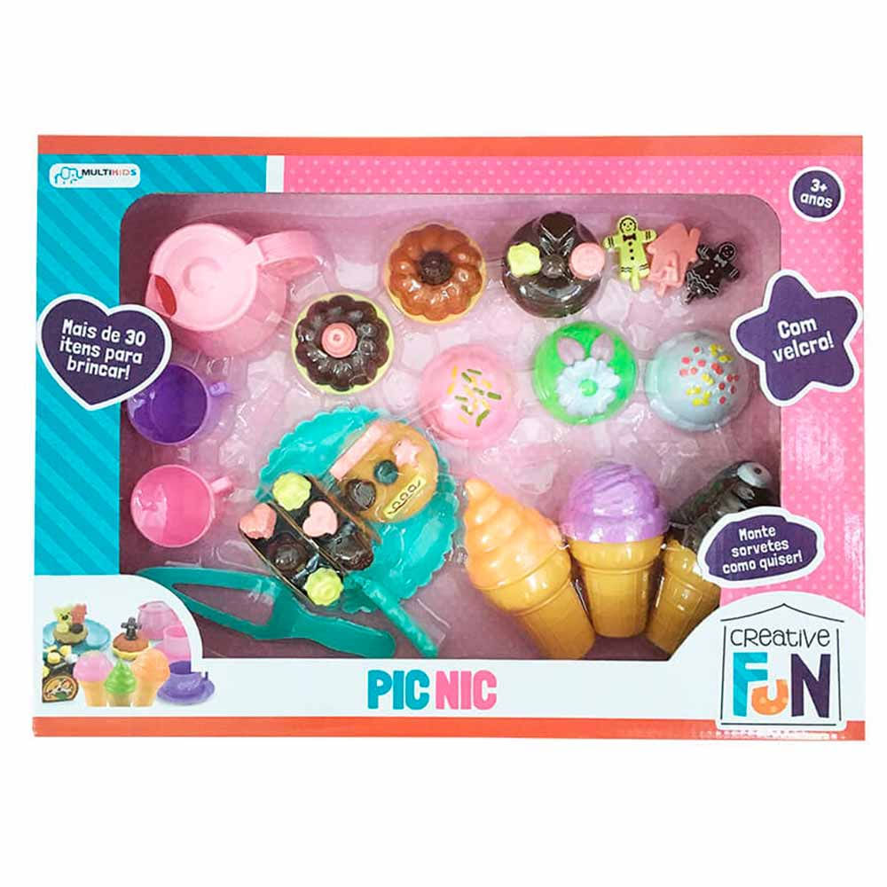 kit Comidinha Infantil - Creative Fun - Pic Nic - Multikids: Com Creative Fun Pic Nic As Crianças Podem Brincar De Piquenique De Um Jeito Muito Mais Divertido. Decore Os Doces E Monte Sorvetes De Diversos Sabores. Vem Com Mais De 30 Itens Para Brincar. São Diversos Acessórios Para Deixar A Brincadeira Incrível. detalhes: • Com Tiras Autocolantes • Acompanha Mais De 30 Itens Para Brincar • Vem Com Sorvetinhos, Rocambole, Docinhos, Talheres E Pratinhos De Brincadeira • Monte Sorvetes Como Quiser • Ideal Para Brincar De Montar, Desmontar E Customizar Uma Linda Brincadeira De Comidinhas informações: • Produto: Kit Pic Nic • Marca: Multikids • Coleção: Creative Fun • Tipo: Kit Infantil • Categoria: Brincando De Casinha • Subcategoria: Alimentos E Comidinhas • Conteúdo: - 01 Prato - 01 Espátula - 01 Faca - 01 Bule - 02 Xícaras - 02 Fatias De Rocambole - 02 Donuts - 02 Tortinhas - 03 Acessórios Decorativos - 03 Casquinhas - 06 Bolas De Sorvete • Recomendação: Para Crianças A Partir De 03 Anos De Idade especificações: • Referência: Br650 • Código De Barras: 7899838814148 • Embalagem (c X A X L): 44.5 X 32.5 X 9.5 Cm • Embalagem (peso): 0.687 Kg • Material / Composição: Plástico E Autocolante • Registro: Ce-bri/sgs I-0469-17 • Certificado: Órgãos Autorizados - Ocp´s (organismos De Certificação De Produtos) aviso: • As Imagens São Meramente Ilustrativas • Os Pesos, Tamanhos E Medidas São Aproximados • As Cores E Estampas Dos Produtos Podem Ter Variações • As Informações São De Responsabilidade Do Fabricante Ou Fornecedor