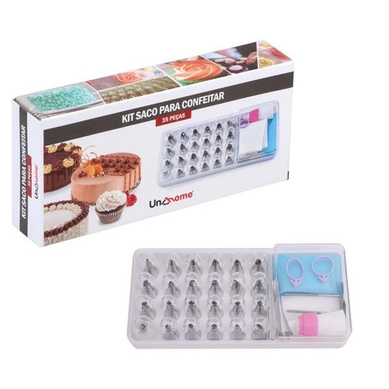Kit Confeiteiro Inox 35 peças Sacos e Bicos para Confeitar.Praticidade e qualidade na decoração de seus bolos...Peso do produto: .ASIN: B07VXXDT73.Número da peça: UD191606.Dimensões do produto: 26 x 13 x 6 cm , 349 g.Referência do fabricante: UD191606 cor:Inox marca:Unyhome