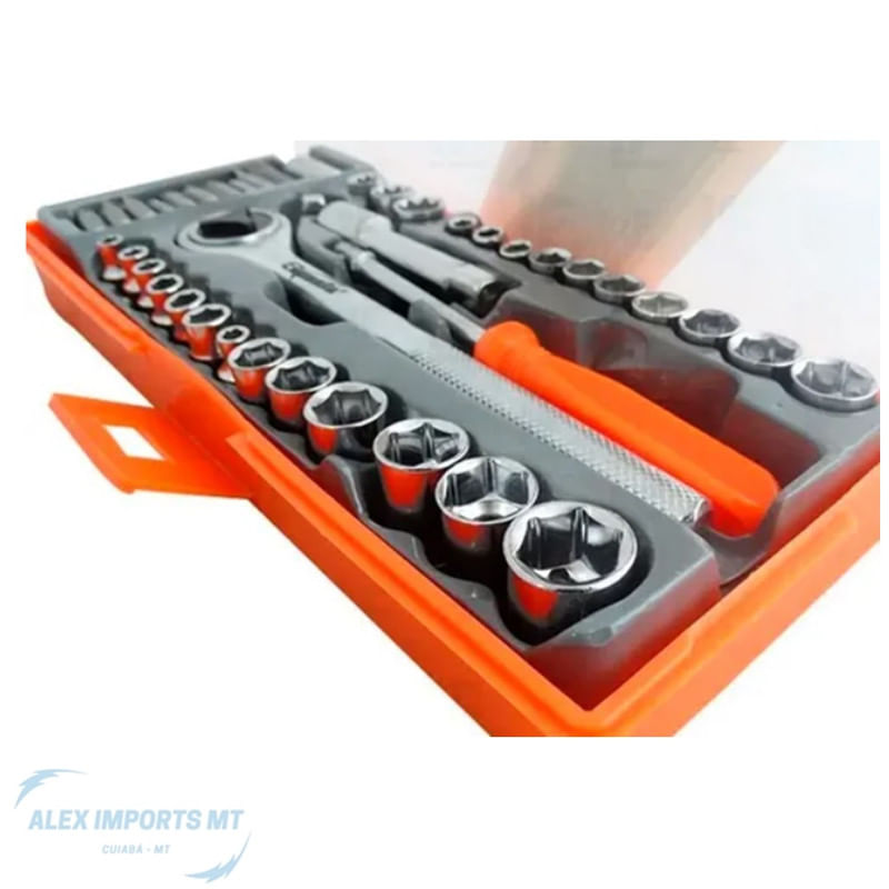 Jogo De Ferramentas Com 27 Peças Fabricados Em Aço Carbono, Abs, Tpr De Alta Qualidade, Oferecendo Resistência E Durabilidade As Peças. Ideal Para Realizar Diversos Trabalhos Hobby E Efetuar Manutenções Diversas. Possui Maleta Em Polietileno De Alta Densidade, Garantindo A Resistência Contra Quedas Além De Manter As Ferramentas Organizadas. - Jogo Contém 27 Peças, Sendo Elas: :: 05 Chaves Hexagonais: 2, 3, 4, 5 E 6mm :: 05 Chaves De Precisão Com Estojo :: 02 Chaves Fenda/philips: 6 X 100 :: 02 Chaves Fenda/philips: 3 X 100 :: 01 Alicate Universal 6” :: 01 Chave Ajustável 8" :: 01 Alicate De Bico 6" :: 01 Estilete Largo 18mm :: 01 Martelo 25mm :: 01 Tesoura Uso Geral :: 01 Fita Isolante 5 Metros :: 01 Trena 2 Metros :: 01 Arco De Serra :: 01 Chave De Teste :: 01 Lanterna :: 01 Lixa De Metal :: 01 Maleta Jogo Chave Soquete C/ Catraca Reversível 40 Pçs Sparta * Contém: - 1 Estojo Ferramentas Chave Catraca Bits Adaptador 40 Pçs Sparta * Itens Inclusos: - 1 Disco Para Catraca - 2 Bits Pozidrive 25mm: Pz1, Pz2 - 2 Bits De Fenda 25mm: 5,6mm - 3 Bits Phillips 25mm: Ph1, Ph2 E Ph3 - 10 Soquetes Sextavado: 4 - 4,5 - 5 - 5,5 - 6 - 7 - 8 - 9 - 10 - 11mm - 10 Soquetes Sextavado: 3/16 - 7/32 - 1/4' - 9/32 - 5/16 - 11/32 - 3/8 - 13/32 - 7/16 - 1/2' - 3 Soquetes De Encaixe De 3/8': 12 - 13 - 14mm - 3 Soquetes Estriados: 1/4' - 5/16 - 3/8 - 1 Chave Catraca Reversível Encaixe 3/8 - 1 Extensão Para Soquetes De 3 Encaixa 3/8 - 1 Adaptador 3/8 Para 1/4' - 1 Cabo Fenda Para Soquetes Encaixe 1/4' - 1 Adaptador Macho Encaixe 1/4 Sextavado - 1 Adaptador Femêa Encaixe 1/4' Sextavado