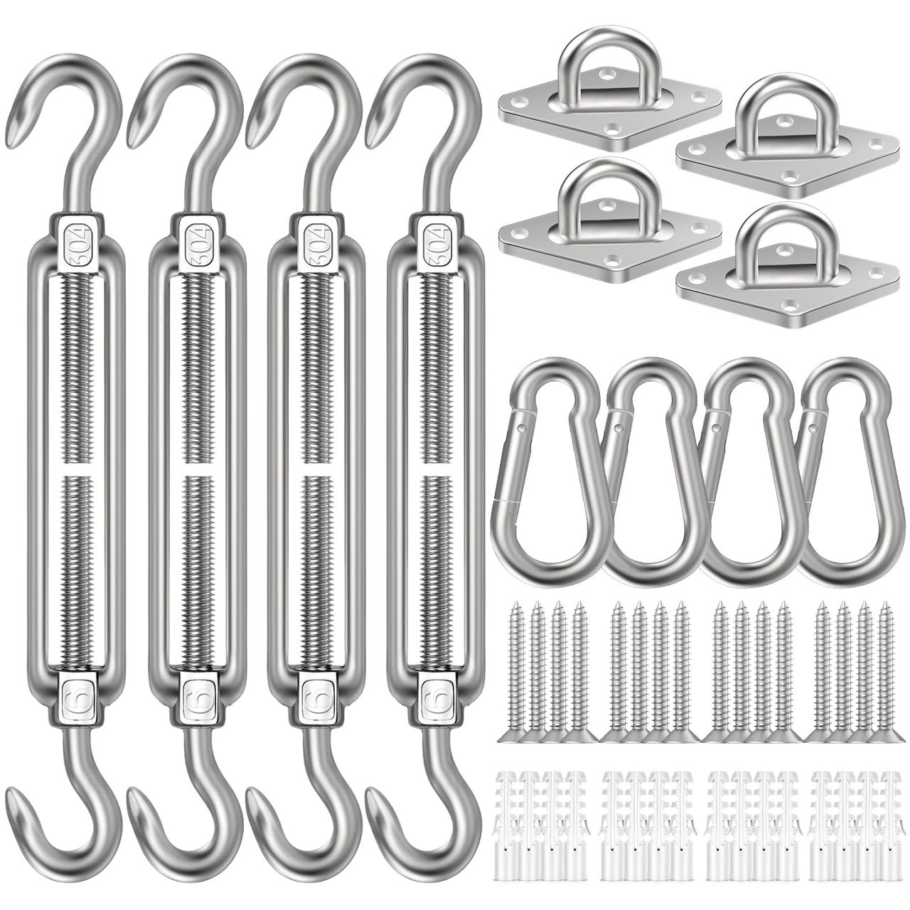 - Um Conjunto Completo Incluído: Nosso Kit De Hardware De Vela De Sombra Resistente Contém 44 Peças De Componentes: 4 Peças De Esticadores, 4 Peças De Olhais, 4 Peças De Ganchos De Pressão, 16 Peças De Parafusos, 16 Peças De Expansões De Plástico.