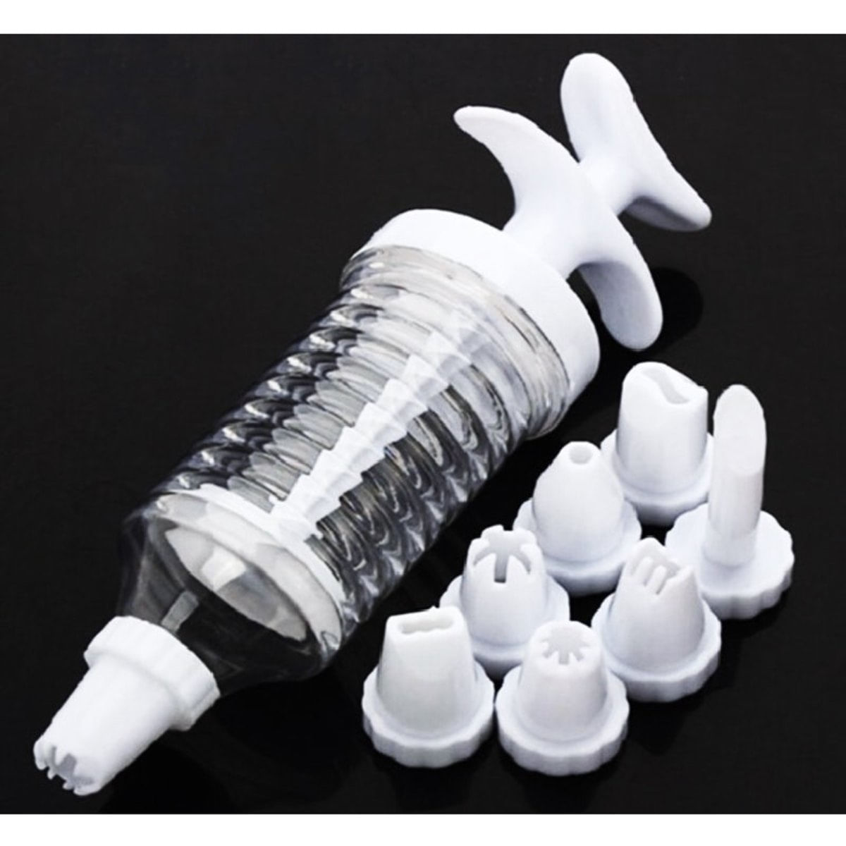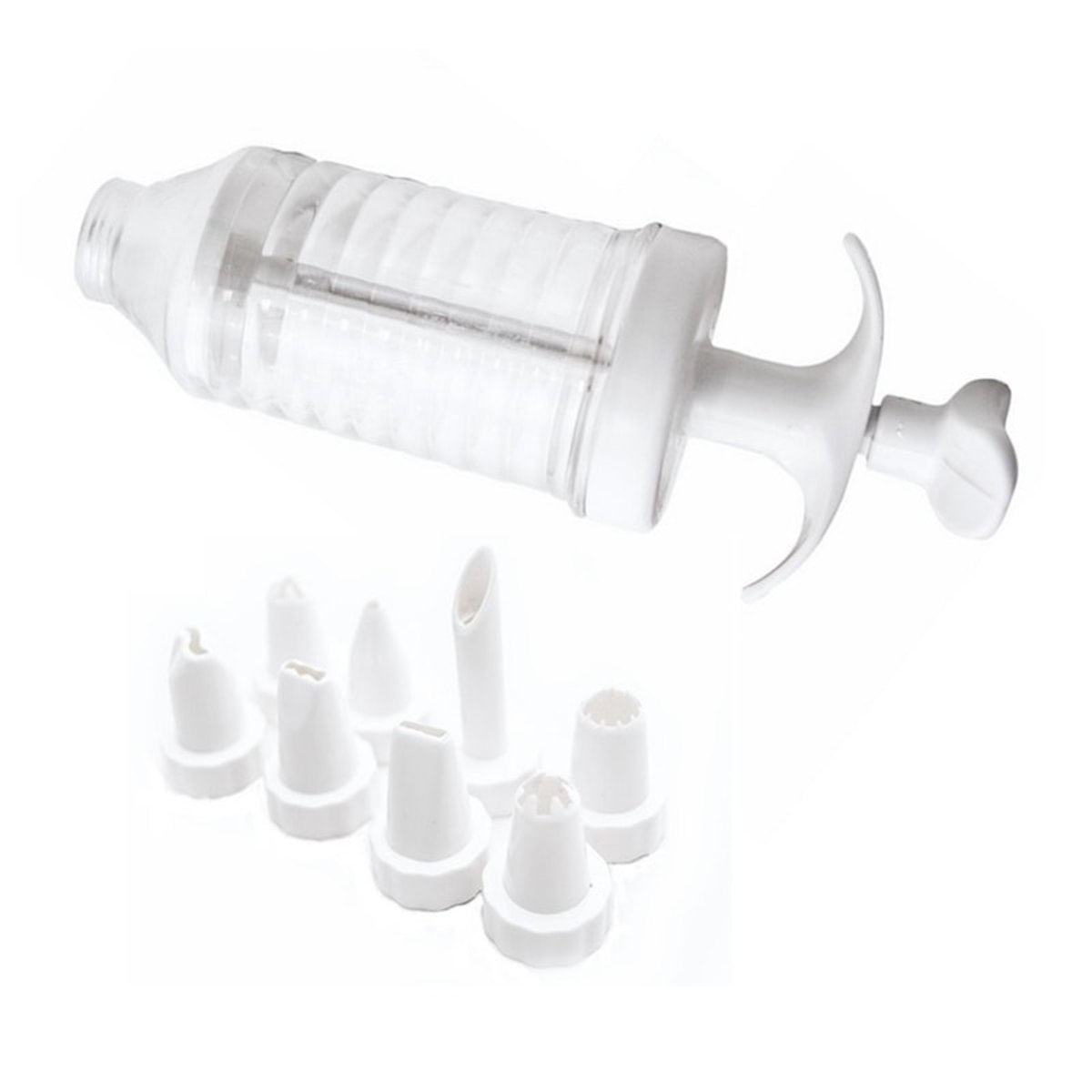 Com a Pistola Seringa para Confeitar e Decorar seus Bolos e CupCakes nunca foi tão fácil..Recheie pães de queijo e muito mais. Faça biscoitos e vários tipos de quitutes com facilidade..Uma divertida ferramenta indispensável para personalizar e embelezar suas sobremesas favoritas. .Funciona como uma seringa, esta pistola é fabricada em plástico rígido de qualidade, transparente e com 8 opções de bicos, inclusive para rechear. ..Especificações:.Fácil de limpar.Material: plástico .Medidas Aproximadas: 18 cm Compr. X 4,5 cm Diâmetro.Peso Total Aproximado: 60 gramas..Itens:.01 Kit Pistola Decoradora para Confeiteiro