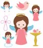 Kit Display De Chão, Totem Batizado Anjinho Menina Com 7 Peças + Lona