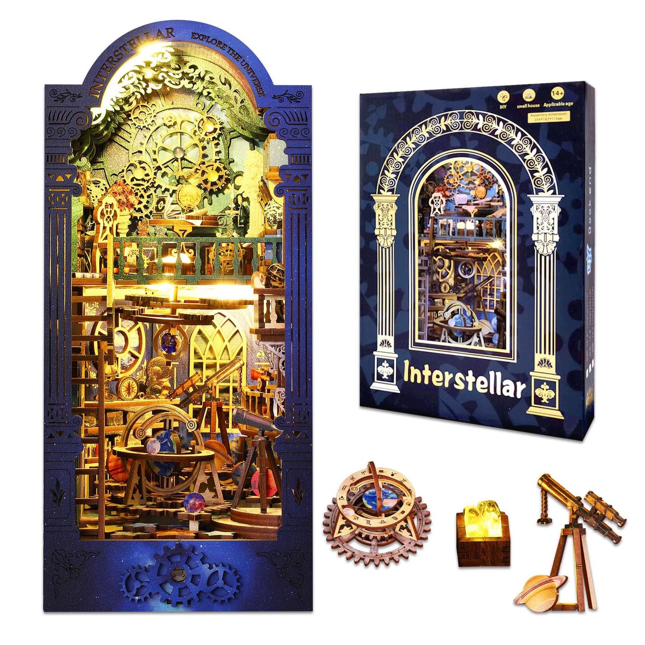 - Design Exclusivo – "para Ir Com Ousadia Aonde Nenhum Homem Jamais Esteve." Este Kit De Recanto De Livro, Projetado Com Um Tema "interestelar", Combina Um Quebra-cabeça De Madeira 3d, Diorama E Decoração De Estante Em Um. Quando Você Olha Para Ele, O Universo Se Desdobra Diante De Seus Olhos. Pronto Para Começar Sua Aventura?