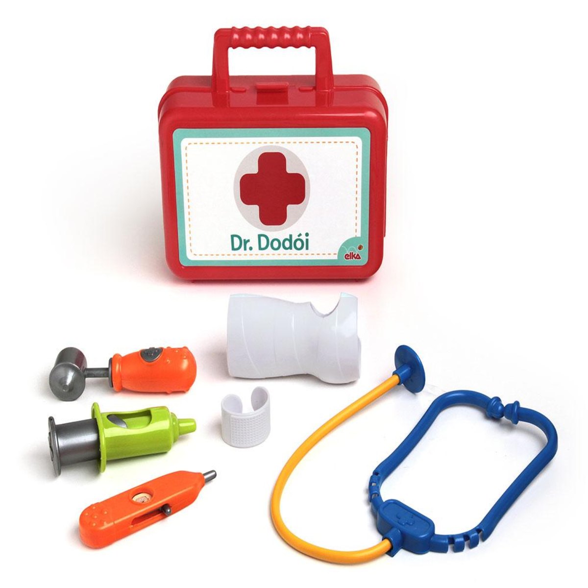 Kit Dr. Dodói - Elka Dr. Dodói é um kit com tudo que um médico precisa ter. Vem com termômetro para medir a temperatura, otoscópio para examinar os ouvidos, estetoscópio para ouvir o coração e os pulmões, curativo para cuidar daquele machucado e até gesso para engessar um braço quebrado! Tudo isso guardados em uma maleta prática que ajuda a criança a levar a brincadeira para onde quiser! Agora os pequenos serão grandes médicos ou médicas com o Kit Dr. (a) Dodói da Elka! Idade recomendada: Acima de 3 anos. Inmetro: 000969/2019 - OCP006.