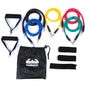 O kit é composto por elásticos de borracha natural látex de alta qualidade e resistência. Cada elástico tem 1,20m de comprimento e permite criar mais de 30 diferentes níveis de resistência, anexando 1, 2, 3, 4 ou 5 elásticos simultaneamente.