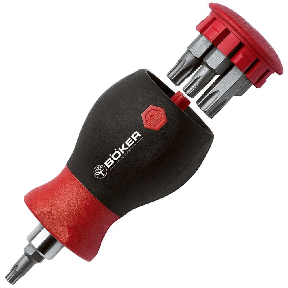 Kit ferramentas Torx Boker, apesar de suas dimensões compactas, o kit de ferramentas de alta qualidade da Wiha fornece uma alça altamente ergonômica para realizar sem esforço trabalhos de instalação com canivetes. Os bits de qualidade garantem uma precisão de montagem ideal e manuseio seguro. Eles são armazenados com segurança dentro da alça. O Boker Toolkit Torx inclui os tamanhos de torx TX 4/5/6/7/8/10/15.Comprimento total: 6.5 cmPeso: 82gMarca: Bker.