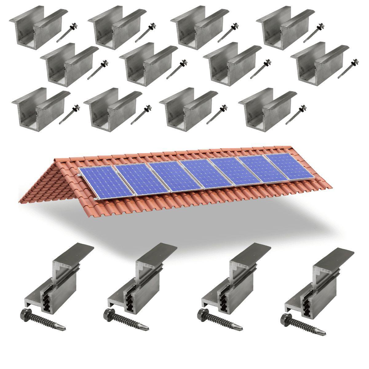 Kit Fixador Grampo Final Regulável E Intermediário Tipo U Para 07 Placas Painel Solar Alumínio E Inox Perfil Master
