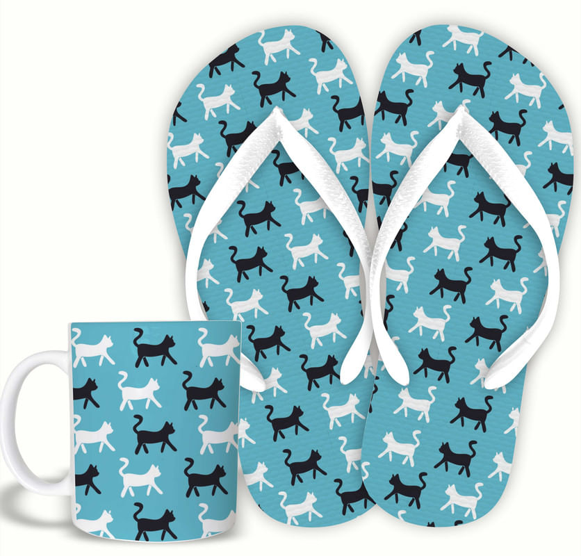 CalçadosChinelosKIT Gato Caneca cerâmica + Chinelo
