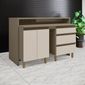 Kit Ilha Gourmet 2 Portas 3 Gavetas Com Tampo Aurora Duna/cristal.