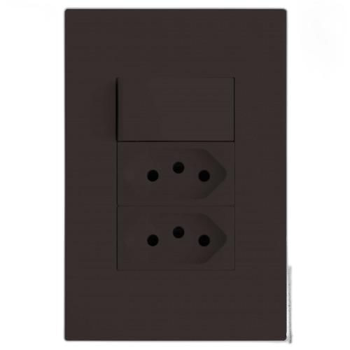1- Cj Interruptor Paralelo + Tomada Dupla 10a 4x2 - Recta Chocolate Satin Fosco - Brs12299-8ch
