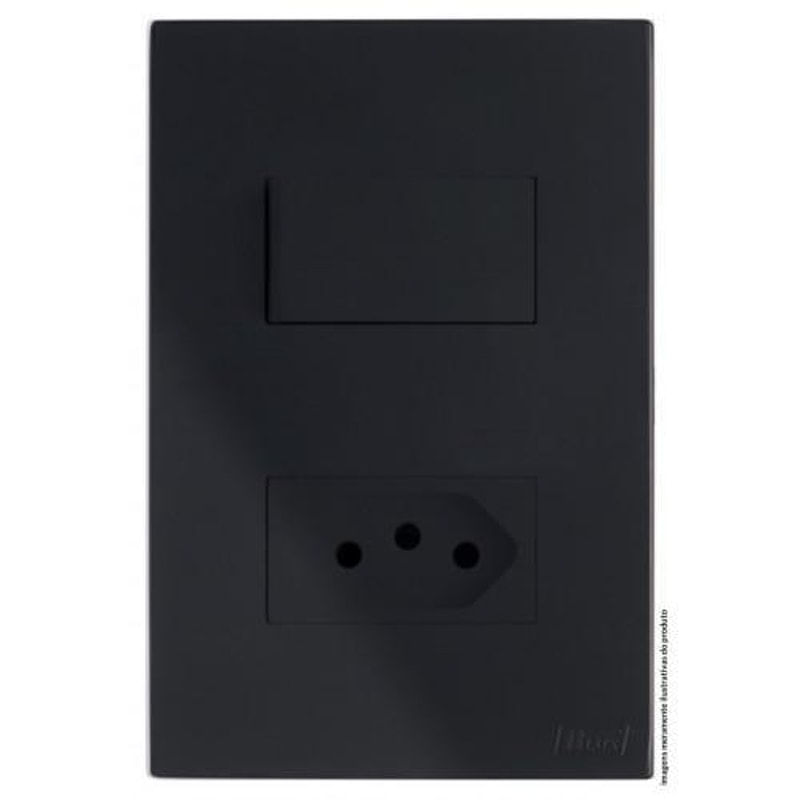 Cj Interruptor Simples + Tomada 20a 4x2 - Recta Black Satin Fosco - Brs12217-3bk