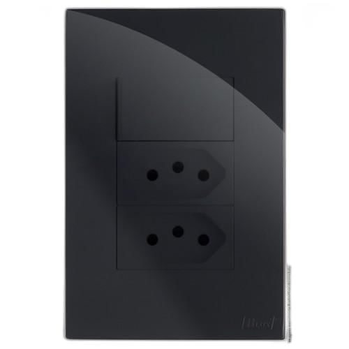 Cj Interruptor Simples + Tomada Dupla 10a 4x2 - Recta Black Gloss - Brg11339-5bk