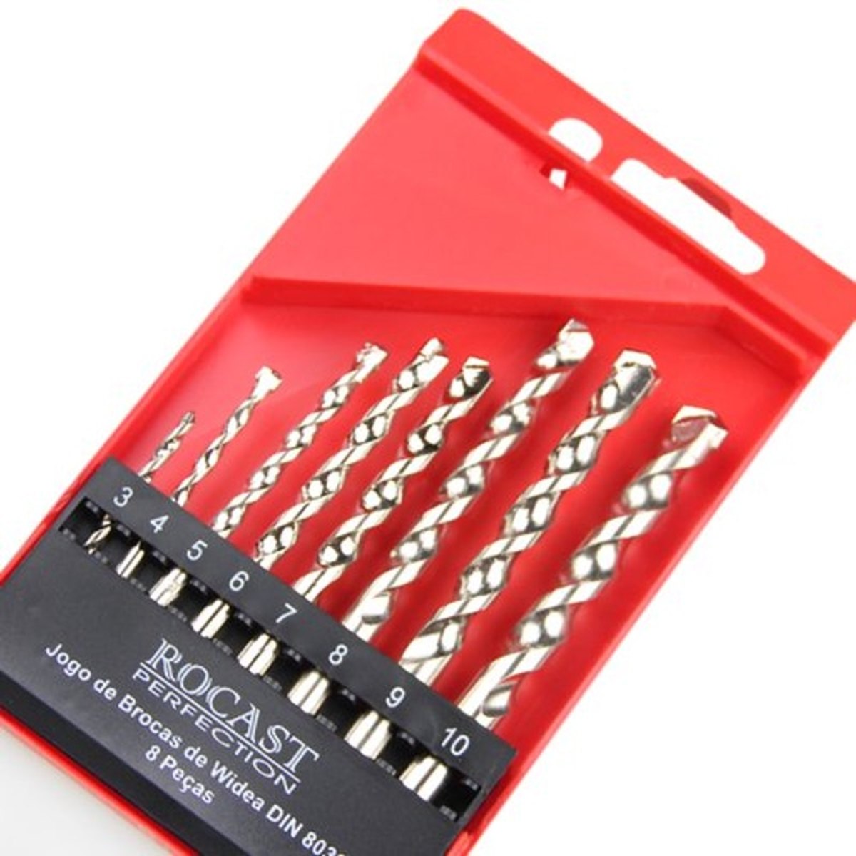 Jogo de brocas com haste cilíndrica com pastilha de metal duro.Ótima sugestão de presente.Tenha às mãos, sempre que precisar, as brocas mais usadas sem precisar emprestar do vizinho.Não perca mais brocas e mantenha tudo organizado facilitando a reposição.Uso profissional em oficinas, escolas, indústrias e comércio ou uso doméstico ou hobby.Indicado para construção civil e alvenaria.Acabamento brilhante.Apresentação: organizado em estojo plastico.Composição: 8pçs e 3 a 10mm.3,0 - 4,0 - 5,0 - 6,0 - 7,0 - 8,0 - 9,0 - 10mm