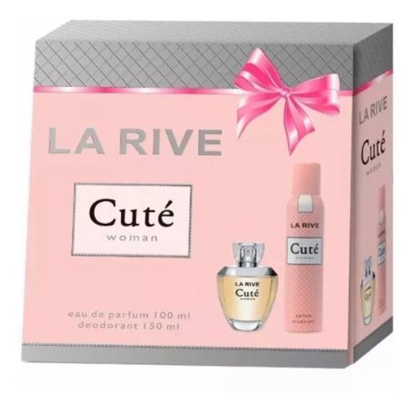 Kit La Rive Cute Eau De - Parfum 100ml + Desodorante 150ml - Original com Nota FiscalO Kit contém:1 Cuté Eau de Toilette - 100ml 1 Desodorante - 150ml. O perfume feminino Cuté Woman Eau de Parfum da marca La Rive é um perfume feminino de aroma especial, único e remete à doçura e ao romantismo tipicamente femininos com um toque divertido e ligeiramente atrevido.O aroma do perfume feminino Cuté Woman é especial e único, e remete à doçura e ao romantismo tipicamente feminino com um toque divertido e ligeiramente atrevido. Suas notas combinam flor especiado quente, doce, atalcado, floral branco, balsâmico e frutado.A MarcaLa Rive é um dos produtores de perfumes líderes na Polônia. Seguindo as tendências mundiais, mas nunca deixando a sofisticação e a qualidade de lado, a marca oferece fragrâncias que vão desde os populares cítricos, frutais e florais, passando pelos orientais, amadeirados, especiados, gourmand e couro, chegando aos aquáticos, ozônicos, aromáticos e chipres. La Rive garante excelente fixação e sensação de luxo. O kit feminino de Eau de Toilette e Desodorante é uma excelente opção para presentear a si mesmo ou dar de presente para quem deseja surpreender.Somos a Garota Bonita Cosméticos temos o que há de melhor em cabelos, unhas, maquiagens, perfumes, acessórios e muito mais. A loja de varejo está no centro do Rio de Janeiro com produtos nacionais e importados e uma equipe incrível treinada com dicas para resolver os problemas dos seus cabelos, crespos, lisos, alisados ou danificados. A missão da Garota Bonita e da sua equipe é proporcionar a cada cliente uma experiência divertida e informativa.