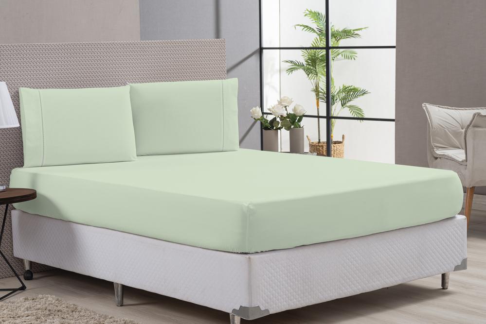 kit Lençol Com Elástico E Fronha 80% Algodão Verde Queen