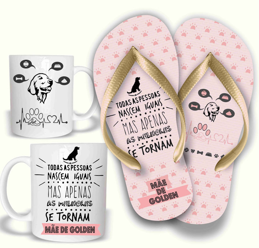 CalçadosChinelosKIT Mãe de Golden Caneca cerâmica + Chinelo PET