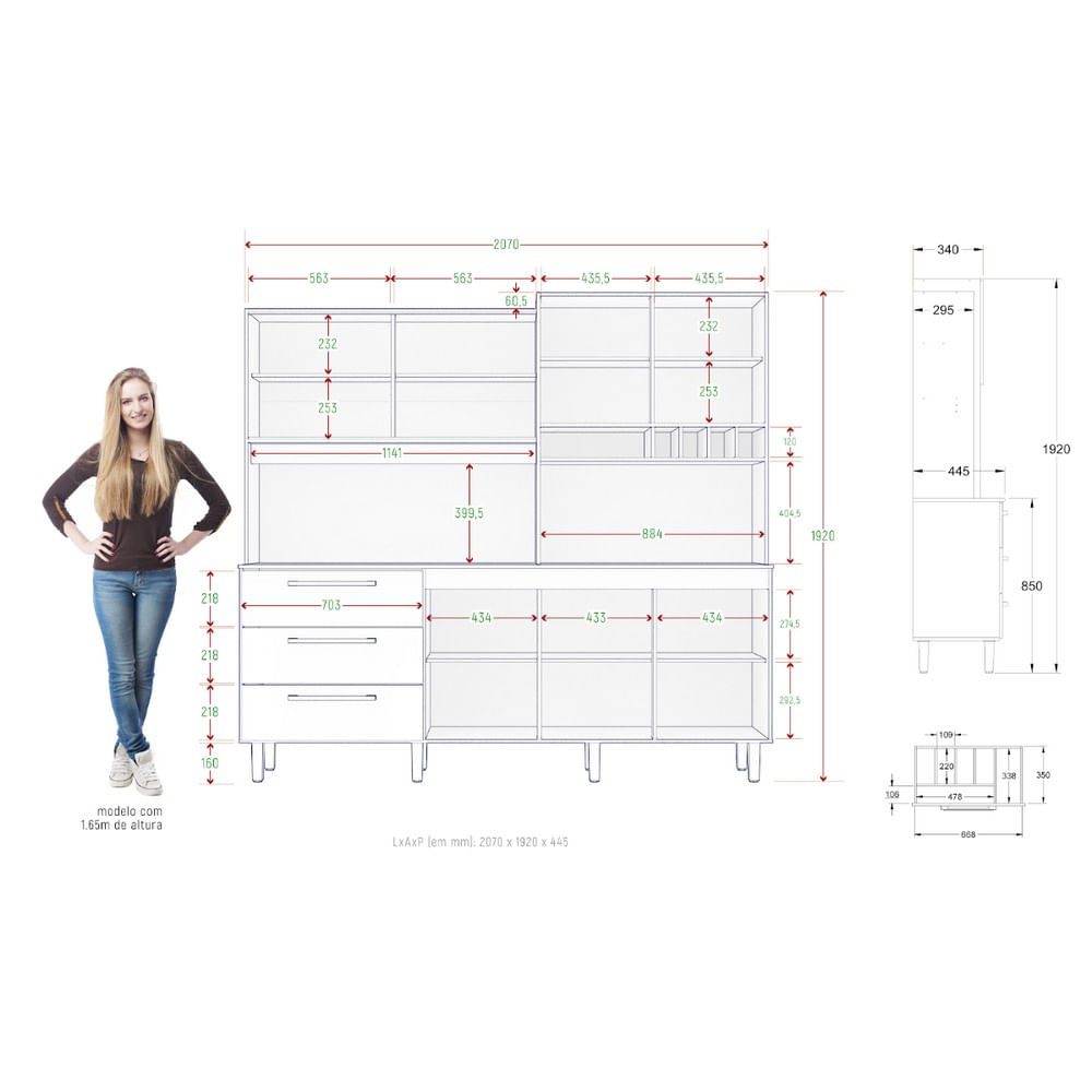 O Kit Mega Possui Design Moderno E Qualidade Única, É O Móvel Ideal Para Sua Cozinha. Possui Seis Portas, Sendo Duas De Vidro Temperado E Serigrafado, Uma Basculante Com Pistão A Gás, E Três De Abrir, Três Gavetas Espaçosas, A Primeira Com Divisória Para Talheres, Todas Com Corrediças Telescópicas Que Proporcionam Maior Amplitude De Abertura, Três Prateleiras Internas Com Excelente Espaço Para Armazenagem De Produtos E Utensílios. Também Contém Espaço Para Micro-ondas, Nicho E Garrafeiro, Tampo Em Mdp 15mm Com Acabamento Uv-verniz Preto Texturizado E Oito Pés Com Regulagem De Altura. Dimensões: Altura: 192,2 Cm Largura: 207,4 Cm Profundidade: 44,8 Cm Peso: 104,5 Kg Garantia Do Fornecedor: 3 Meses.